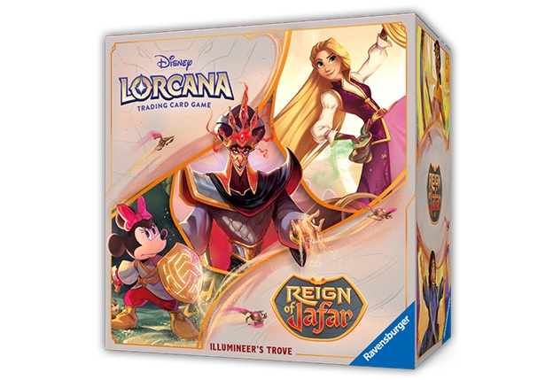 Collectors and players seeking a more comprehensive package can look forward to the Illumineer's Trove. This set typically includes booster packs, card dividers, damage-counter dice, a lore counter, and a storage box, all themed around Reign of Jafar. The characters featured on the Trove packaging mirror those on the Booster Boxes, including Jafar, Minnie Mouse, Rapunzel, Bruno, and Tiana.
