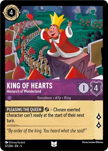 King of Hearts looks like it's conflicting with itself on whether you want to use it's activated effect or to quest with it. It may be too slow in Constructed at this time, and it doesn't seem to provide much value at a 4-cost slot in Limited either.