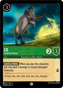 Ed brings a really good ability at the 3-cost character slot which makes sense why he's non-inkable. He synergizes well with other hyena effects and even the Robin Hood we mentioned earlier.