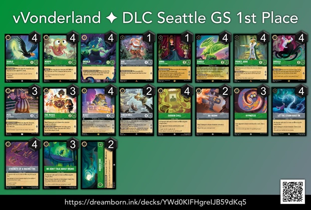 After a grueling 9 rounds, and top 64 cut, our Disney Lorcana Challenge: Seattle winner was no other than Luke Goodwin, also known as vVonderland from Team Labyrinth! vVonderland took the event with a repeat of Emerald/Steel, giving the deck back to back wins from Vegas to Seattle. Here's a look at the list below: