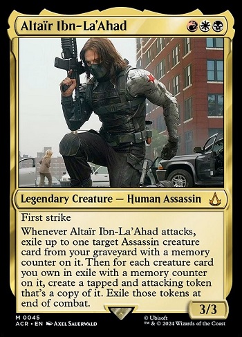 I had to throw in some Marvel characters into this list and decided to use the Winter Soldier himself, Bucky Barnes, for this art swap. Bucky feels right for Mardu colors, and his history of being taken in and out of cryogenic stasis seems to fit this card, though it's certainly not a perfect fit. I just don't know the Assassin's Creed story and world well enough to feel confident in matching each of these characters with the exactly right Magic card.