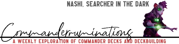 It's hard to argue that this deck might not be stronger if I had decided to lean heavily into one singular theme. Mill, combo, Ninjas, Wizards, Rats, Dragons, or even Dimir Horrors would be fine directions to take Nashi, Searcher in the Dark. By running a little bit of everything, I tried to make the deck a little more interesting for me to play. I've played nearly every type of deck by now, so if one of those themes isn't one you've had a chance to explore, I would encourage you to give it a try. Variety is the spice of life, after all, and Nashi seems like a very capable mid-powered commander for lots of different types of decks. I'm very likely going to build Nashi Dragons if I open him in a prerelease or a random booster pack, but lots of other flavors of Nashi could also work well.