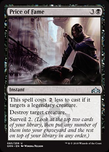 We also have surveil tacked onto a variety of spells that every deck should be running. Price of Fame is an instant-speed removal spell that costs ![]()