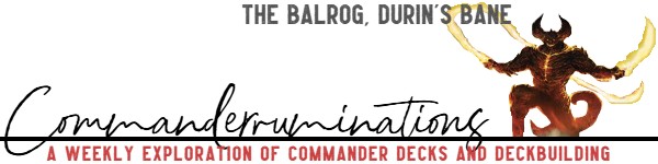 When Tolkien's Dwarves of Moria dug too deep, they eventually dug their way to the Balrog. In today's build I won't be digging through my deck too hard to find key cards. That might have been a cute way for WotC to have designed The The Balrog, Durin's Bane, but this card has me less focused on digging and more focused on sacrificing permanents. Each one that's sacrificed will cut the cost of my commander by 1 mana.
