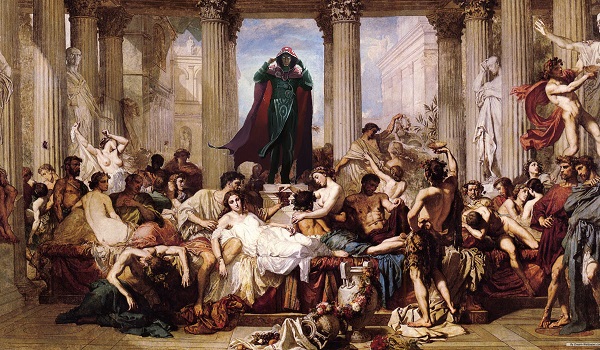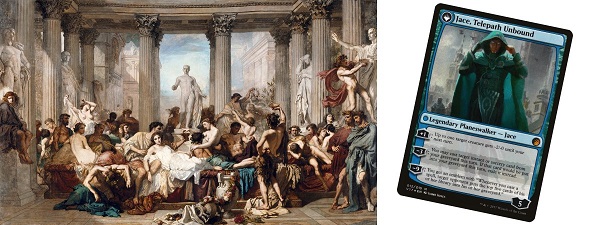 If Darigaaz was easy, Jace, Telepath Unbound was a challenge. I'm not sure what inspired me to marry his art with Thomas Couture's 1847 painting Romans in the Decadence of the Empire, but it was a fun and successful challenge.