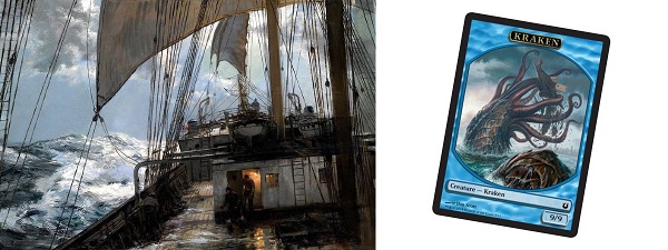 When a mashup of a background painting and a Magic card comes together so well that it's hard for me to imagine the final piece without the added content, I know I've done something right. Now we know why those figures are coming out on deck. This is probably my most seamless work and the only thing keeping it out of the Top 3 might be the anonymity of the Kraken token. I mean really? A Kraken token made the Top 5? Look up at that picture again. You'd better believe a Kraken token made my top 5.