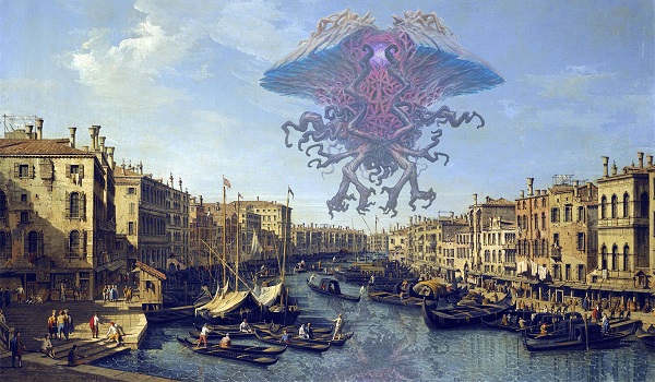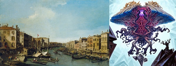 I came across some concept art of Emrakul by Mark Tedin, paired it up with Giovanni Antonio Canal's 1730 painting of Venice: The Grand Canal from the Rialto to the Palazzo Foscari, and the rest is history. Looking at this mashup every time I brought up the Wix blog site probably affected my opinion of the piece, but I do think it still stands up well.