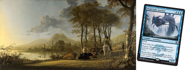 Every week my columns include a header graphic that is created by taking a famous painting and using image editing programs to put artwork from a Magic card into the picture. The example above is an old one that is made from a famous painting and not one, not two but FOUR pieces of artwork from Magic cards. Can you pick them all out? At the end of today's column I'll show you which cards went into that image.