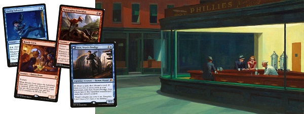 The cards I included are Daring Saboteur, Rowdy Crew, Rampaging Ferocidon and Jace, Vryn's Prodigy. Could you name them all? Did you notice that the advertisement above the diner was changed to "Ixalan Diner"? I had a lot of fun with that one, and given how much time I'm spending on it you can think of it as an honorable mention for today's list.