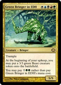 The argument of not being able to but these guys in your deck is ridiculous. Each one of the Bringers does something monocolored, but because of the alternate casting costs, they’re screwed in those decks. The argument about color bleed, not letting certain colors do off-color abilities, is a joke when it comes to Magic. If that’s the case, ban Psionic Blast for Blue direct damage, or Harmonize for Green just drawing cards.