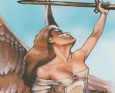 There are actually two types of Serra Angels; those born of a warrior’s soul, followers of the goddess Serra, and those who follow the late planeswalker Serra. Like Serra and the goddess, many confuse the two.