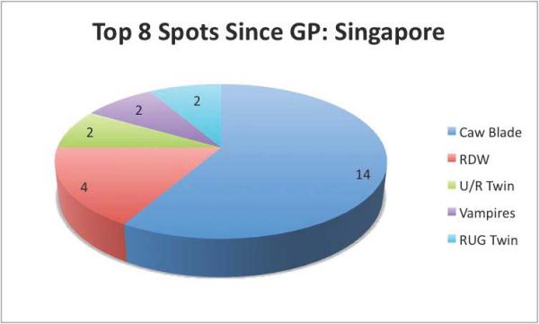 Even if we take GP: Singapore out of the equation, Caw-Blade’s numbers only go down by 5, making it a 9 on the chart instead of a 14. That’s still more than double the presence of the next closest deck, and more than four times the rest.