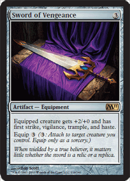 This card is the ultimate O.G test for Magic the Gathering players. If, like me, the first thing that came to your mind when you saw it was "Twincast is red now!" then you probably aren't an MTG veteran. You might be feeling a little old but if the first thing that came to mind was "They're reprinting Fork!" then you are almost certainly an MTG Original Gangster! Congratulations. If Red Deck Wins wasn't a threat before it almost certainly is now. Not only can you double up on any burn spell in your hand, the great part about Reverberate is that you can copy an opponent's spell as well! Your opponent trying to heal? Why not heal along with them-- in red! What's that? Cruel Ultimatum, you say? Me too! There's nothing like having a little bit of control splashed into a red deck every now and again. A great throwback for old fans and a neat color twist on Twincast for the newer players.