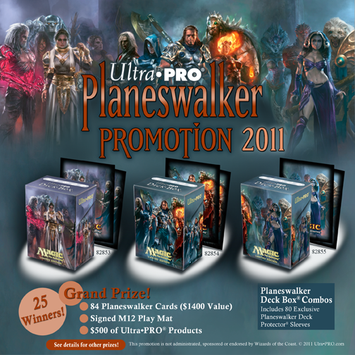 UltraPro, maker of accessories for Magic: The Gathering and other card games, has announced a new promotion. Following on last year's Mox sleeves sweepstakes, this year is a free promotion all about the rockstars of Magic characters: Planeswalkers. With a free entry you get entered into a drawing with twenty five winners.
