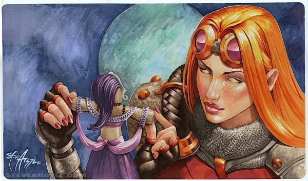 MJ: Interestingly, this antisocial component seems very traditionally nerd-antihero-masculine to me. All the planeswalkers share this alienation, though, which I think is intentional in order to resonate with Magic’s target demographic. It’s just more interesting in the profiles of the female ’walkers, since women in general are usually more group-minded. It would be intriguing to see if women who play Magic tend to actually be more loner/individual/private than the “average” female—which might throw some light from another angle onto the old debate of why women are such a minority in the game.