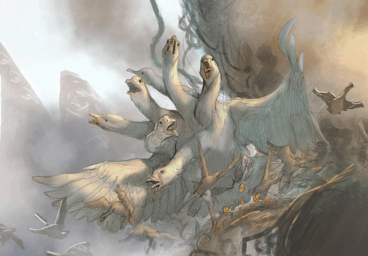 A lot of the best of the year I looked for were artworks that people immediately felt something. The goose hydra was the easiest using that criteria. It's fun, they're mean and scary, and it's painted excellently.