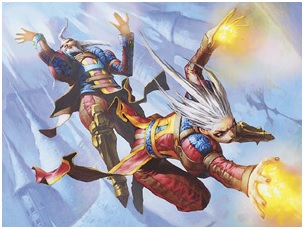 The married couple Izzet members were created before couples were created as completed concepts in Magic like in Kynaios and Tiro of Meletis, Anax and Cymede, Krav, the Unredeemed with Regna, the Redeemer, Pia and Kiran Nalaar, and Ever After. I would think they are a shoo-in for a Commander product, especially with all the heavy Izzet characters, and won't make the cut in the War of the Spark.