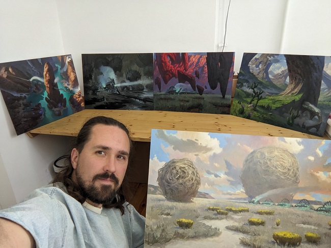 I started painting in oils twenty years ago and was a purist for a long time. That was dumb - self-imposed limitations for no good reason. A few years ago I splurged on a bunch of good quality acrylic paint and let myself go wild and use it all up in just a few days, just so I could get a real feel for its possibilities. They have such different qualities, especially when you have been painting for a long time and you are attuned to subtle textures, differences in drying times, and ways to apply those surface qualities. I wish I had been more open to different mediums earlier, but it was also great to start with oils and stick with that for such a long time. I see so many artists afraid to step into it because it is misunderstood as too expensive or overly complicated. Of course, it has history, and it has the longest track record of material stability, so it is still king when it comes to paintings intended for sale. All of the finished illustrations I do for Magic are oil, although I sometimes use acrylic for sketching or preparatory color studies. The fast drying time allows me to try out glazes and layering sequences I want to use in the final work, and get a good approximation of how they will look. The pigments in both paints are the same, it is just the binder that changes - so you can get a very good sense of how the final painting will look.