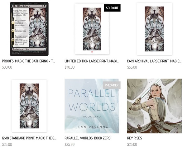 Her The Eldest Reborn limited edition prints were $110 and she only made 50. Jenn then decided once it sold out to have a slightly smaller size for half the price. She then dropped the priced farther for a slightly smaller print. These options of choosing size and price is brilliant.