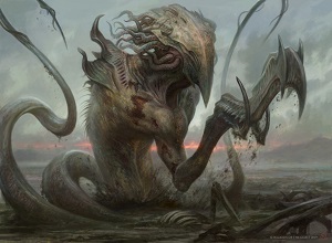 Six years later, and the art description issue has been fixed. They're both familiar with the single claw/spike, yet they have the tentacle headpieces introduced in the core set, reintroduced here. I think it's a nice touch fusing both into something slightly new.