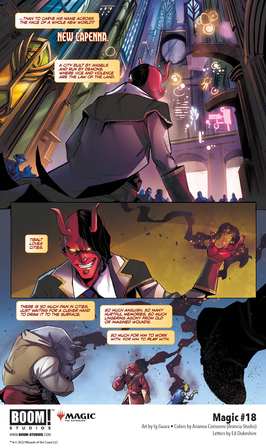 Tezzeret knows he's been betrayed... and he's set his bloodhound, Tibalt, on the traitor's trail. Now Garruk, Chandra, and Niko are all that stand between Davriel Cane and a gruesome death at Tibalt's hands. Cane's agreed to play bait, but insists on a Cabaretti-class production behind him, complete with a guest star Planeswalker who might just give our heroes what they need to find their way back to Ravnica and save Vraska, Kaya, and Ral!