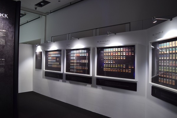 As we turned that corner, we begin to see the next aspect of the exhibition, the history of every Magic set.