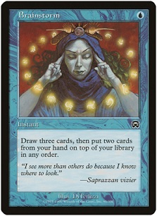 Delver deck at GP Paris], I used mismatched Hymns, because I happened to own two different ones. Nowadays, I just try to keep all my playsets with the same art. I usually try to stick to the one that comes to my mind first when I think of the card. For example, when I think of Ponder, it's the Lorwyn one, and when I think of Brainstorm, it's mostly the Mercadian Masques.