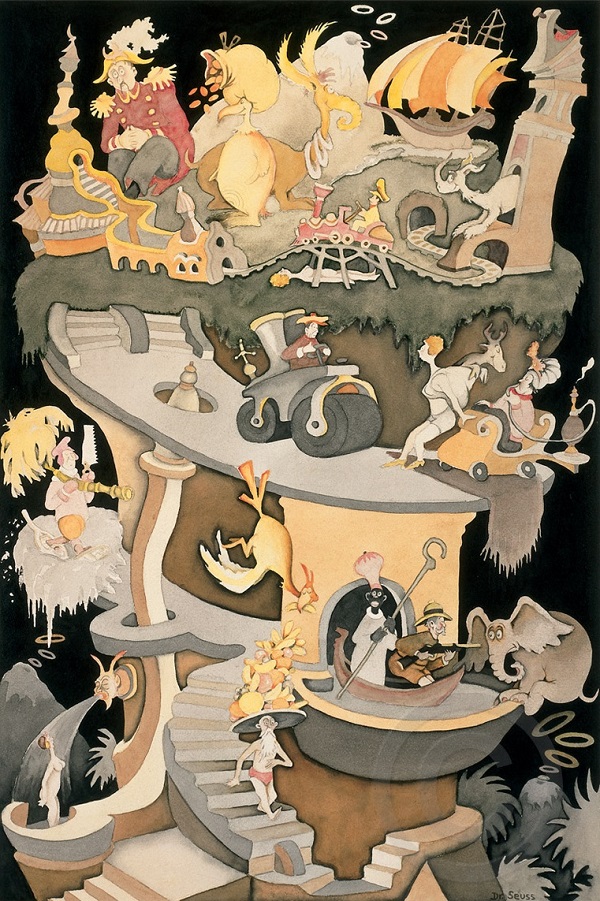As a rather private interview, Theodor Seuss Geisel did not talk openly about his influences, giving us near zero insight into what influenced the whimsical creator. But what we can understand is that Dr Seuss was a visual artist and spent time in Paris producing surrealistic paintings with contemporaries like Salvador Dali and Paul Klee, and it's not hard to see such surrealist influences in his illustrations.