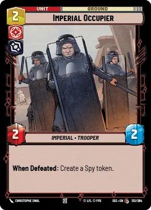 Bodies win games and Imperial Occupier is a common with multiple bodies. I'm holding out on a final take on whether Spy tokens are competitive, but in the meantime Spy tokens are bodies. The Occupier himself is less-than-average but he makes up for it with a second body of almost the same size.