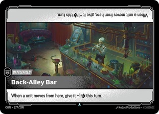 While deck-building has more depth with more restrictions than many other games, gameplay in Riftbound is quite simple. Units have only a single value to keep track of after playing; Might. The goal of the game is to reach 8 points through conquering or holding Battlefields. To conquer a Battlefield you must move units with a total Might value higher than your opponents to a Battlefield, though most units can't move the turn they're played. When you take a Battlefield from your opponent you conquer it and gain 1 point. At the beginning of your turn if you still control a Battlefield you hold it, gaining another 1 point for each Battlefield you hold. This creates a tense back-and-forth with your opponent, but with at least 2 Battlefields in play at a time there's also a sense of forgiveness since most decks struggle to host an army big enough to split attention. This creates interesting decisions on whether to attack a smaller, less defended Battlefield or wait to attack the larger one - giving your opponent a point in order to shore up your legion.