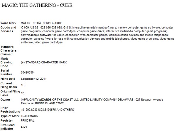 Update: Twitter user @BLeighton1982 rightly points out that a peek at the contents of the trademark filing clearly points to this being for Magic Online or some other computer related venture. We've included a capture of the filing below.