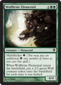 Some people will try to compare this to Ant Queen in Eldrazi Green, and that'd be wrong. Wolfbriar Elemental can be powered up by Elvish Archdruids quickly to generate a very threatening board position. Ant tokens are simply not the same as wolf tokens. It does not interact as well with Eldrazi Monument in long games, but the ability to generate a massive strike force of wolf tokens means that the card will at least get some play in Standard.