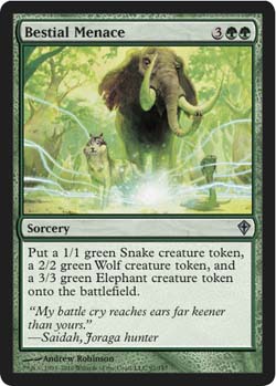 Canopy Cover - It is nothing new for WotC to combine two abilities and grant them both on one enchantment. Usually these turn into good spells simply for the value given. In this case, one part Treetop Bracers and one part Robe of Mirrors to form a two-cost Whispersilk Cloak effect. Obviously not a tournament card (has any creature aura ever been?) but Canopy Cover will draw a lot of attention in casual formats. Of course that is nothing compared to the riots it will cause in sealed play. Giving giant baddies like Craw Wurm shroud and near unblockability (a word I just made up) is guaranteed to cause headaches and win matches.