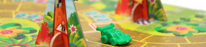 Players will make use of the Sprint and Rush cards as they're making their moves. Each card will have a symbol that represents an effect, and an acceleration value. The effect is optional, but the acceleration value represents how many spaces the player may move their car that turn. Hitting the gas is how you move forward, but the effects really shake things up for you and your opponents!