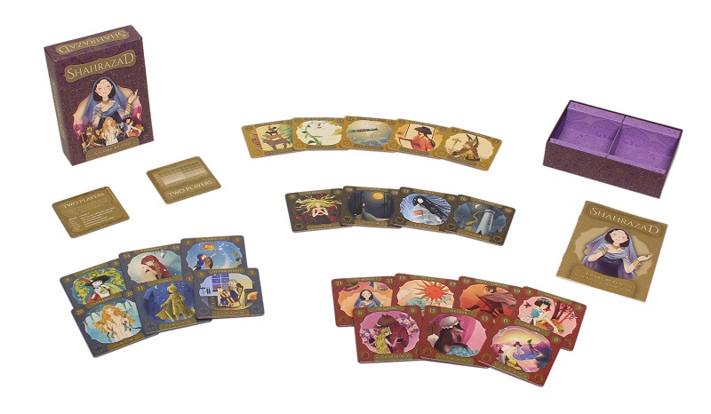 In Shahrazad, you will work alone or with another player to weave the best story possible and live another day in the service of the king. The King is a discerning patron, however, and only the best of stories will appease him. The stories must be told in the proper order, and the King wants to hear certain stories grouped together. Please the King to maximize your score, but only the best stories will truly impress him! Hopefully your story-telling is up to snuff. This is Shahrazad!