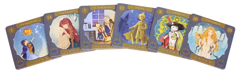 The tiles feature the exquisite artwork of Kotori Neiko. Each tile is beautiful, made from high-quality materials and emblazoned with twenty-two different folktales from around the world; and, it is with these tiles that players will attempt to weave the ultimate story for the King!