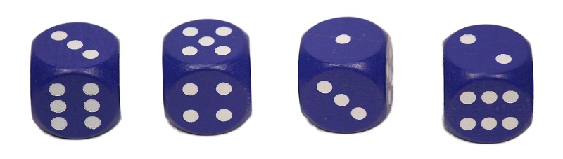 Players can choose to activate an entire row of building by using one of their dice. The number and color of the die will indicate which row or column in can activate, and the player will activate each building in that row or column, placing the die on the last building in that row or column so it cannot be activated again that round. White dice are drafted from a common pool each round and each player may take up to three during a round. Each player starts with one blue die and gains more by advancing up the religion track.