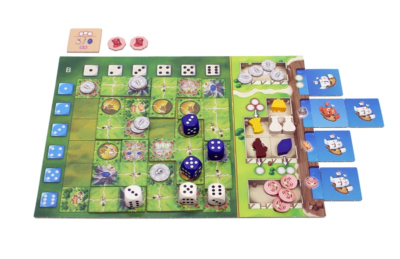 When players wish to expand their colonies, they have a couple of options. They can either choose to spend two wood resources to buy a double expansion tile, or spend two wood and a grain resource for a triple expansion tile. Ten tiles (5 of each) are available each round and won't be replenished until the next round.