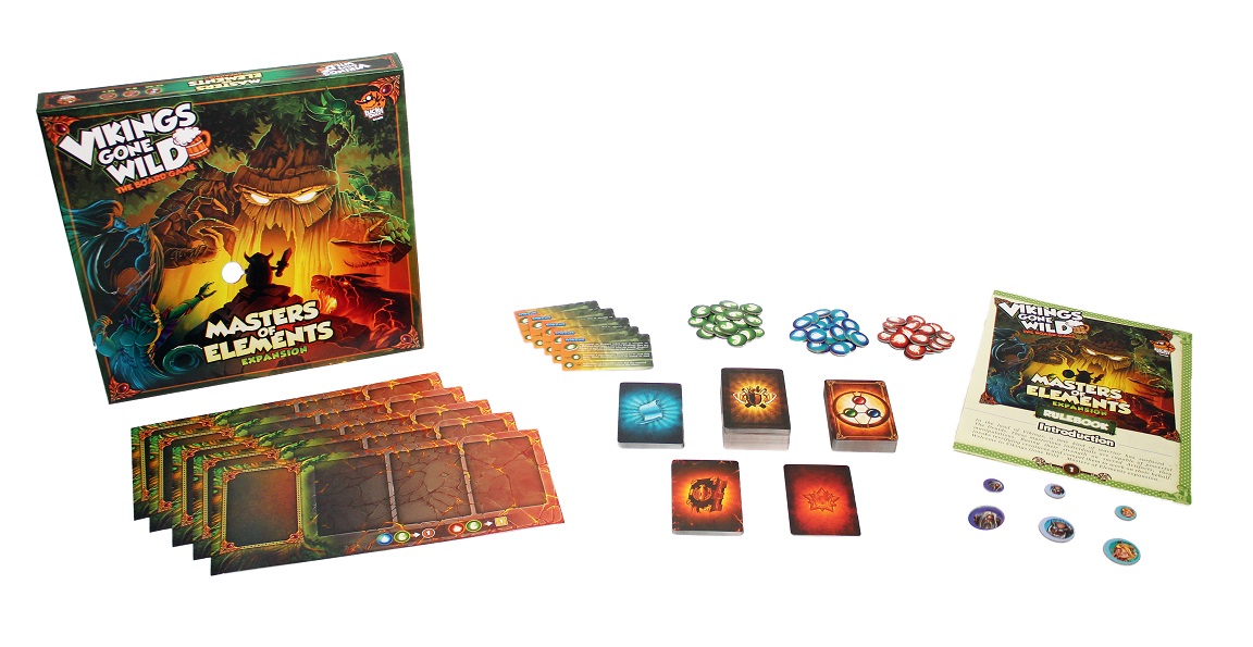 Vikings Gone Wild: Masters of Elements is an expansion for Vikings Gone Wild that adds a new dimension to the game! Each player receives a new board to house their chosen god or Master of Elements and three unique artifacts. Harnessing the power of the elements, players unlock new ways to score points and earn the gods' favor.